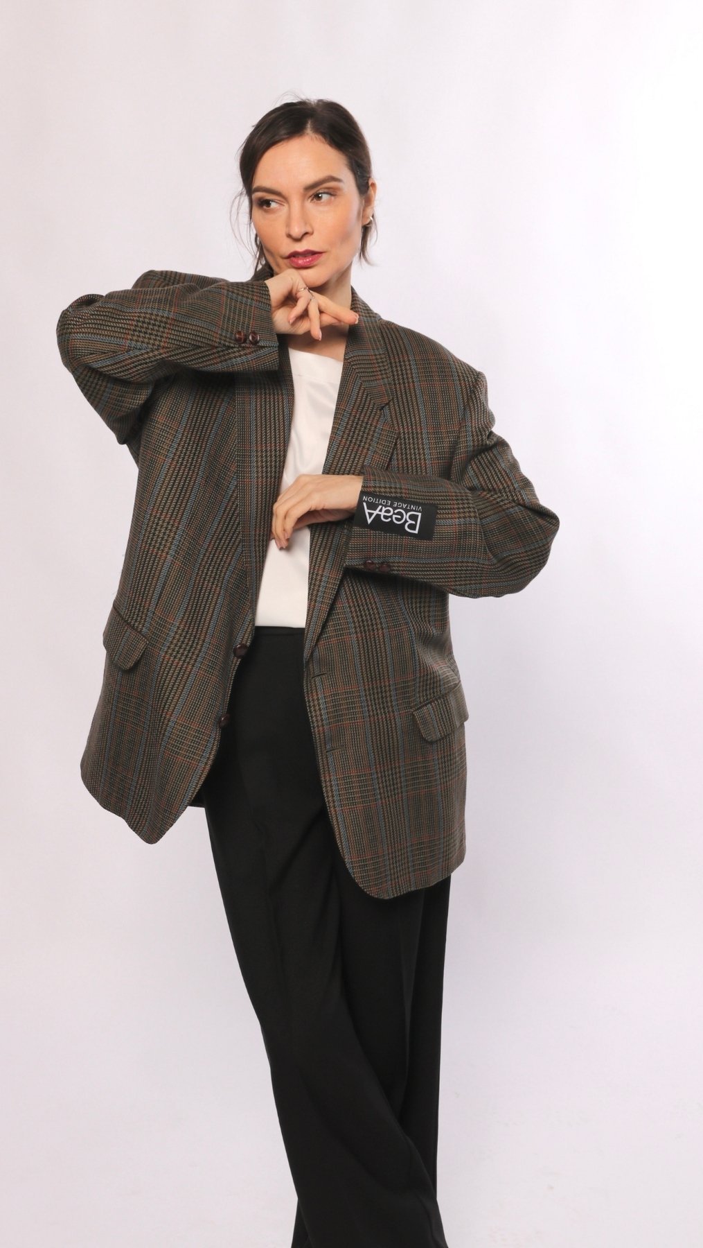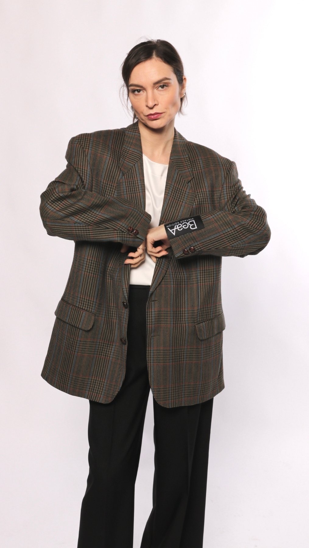 This timeless cut vintage jacket is one of a kind. Upgraded by BeaA’s professional tailors, this item is a stylish enhancement to your wardrobe. Combine it with BeaA trousers, your favorite jeans, leather pants, or a dress.