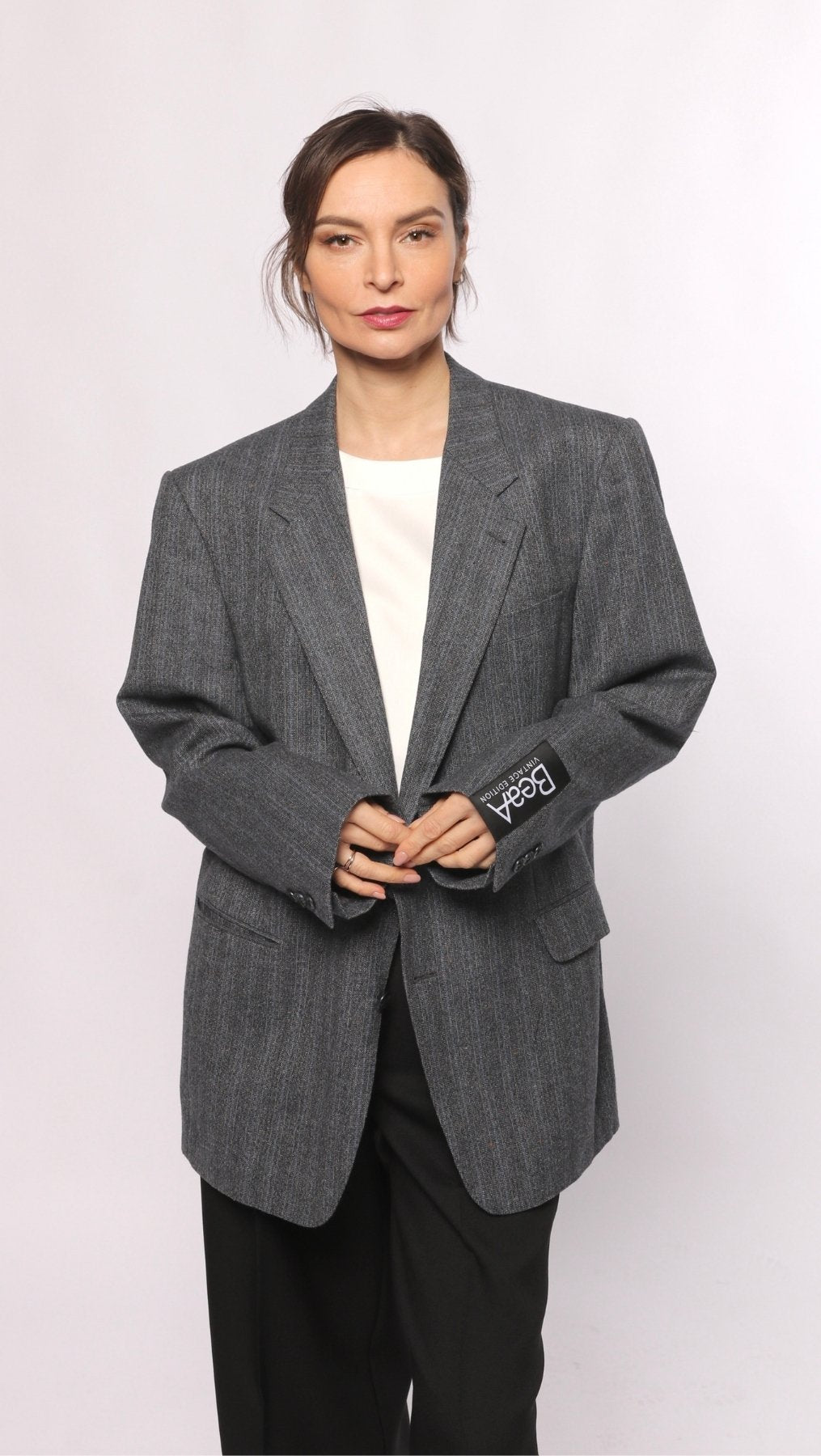 This timeless cut vintage jacket is one of a kind. Upgraded by BeaA’s professional tailors, this item is a stylish enhancement to your wardrobe. Combine it with BeaA trousers, your favorite jeans, leather pants, or a dress.