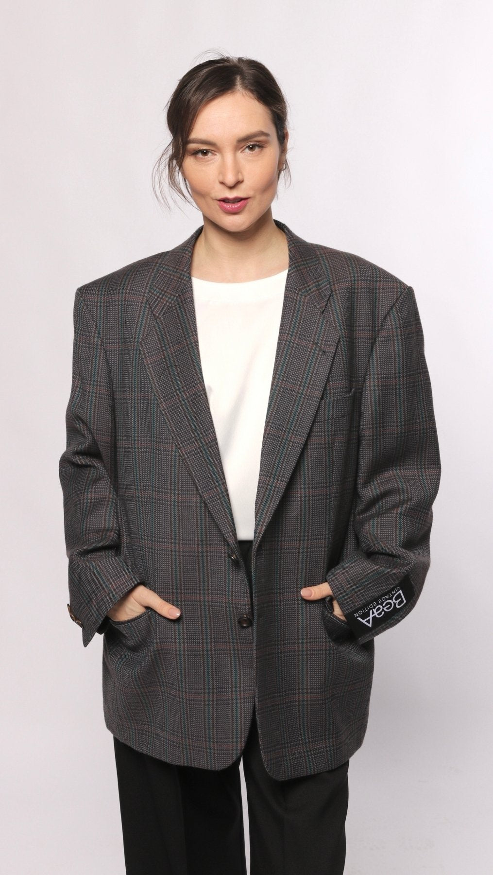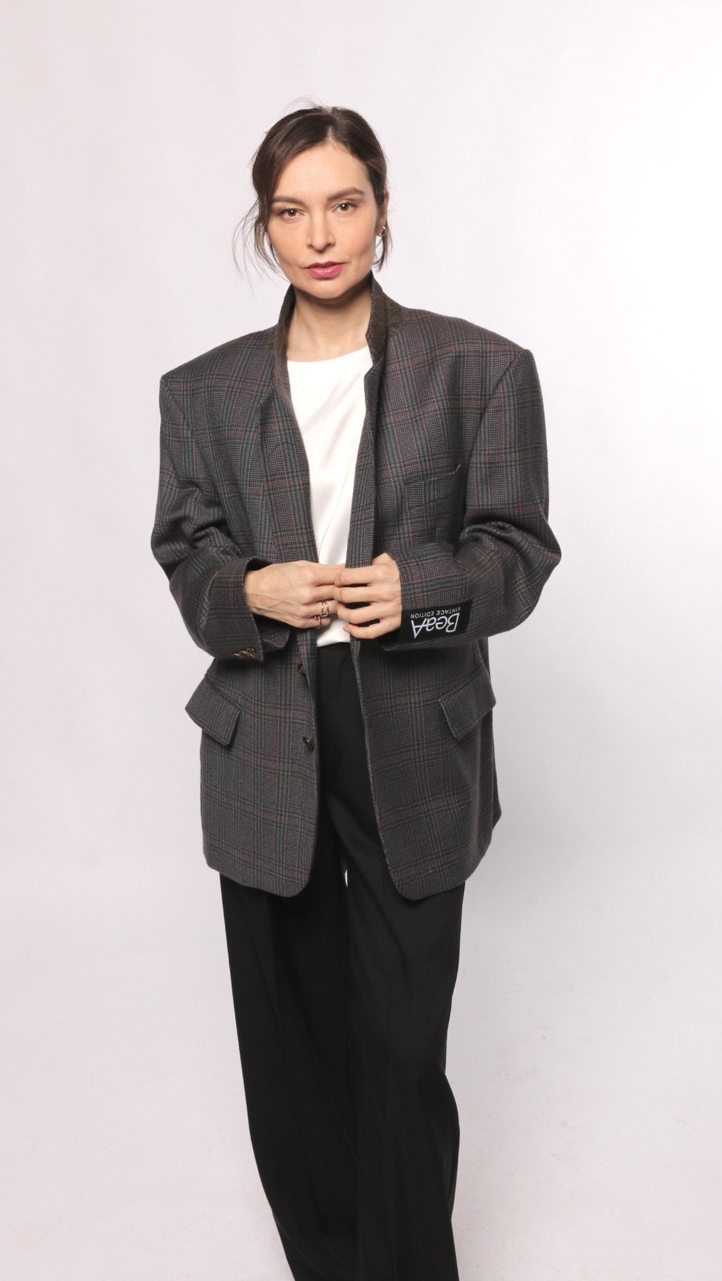 This timeless cut vintage is one of a kind. Upgraded by BeaA’s professional tailors, this item is a stylish enhancement to your wardrobe. Combine it with BeaA trousers, your favorite jeans, leather pants, or a dress.