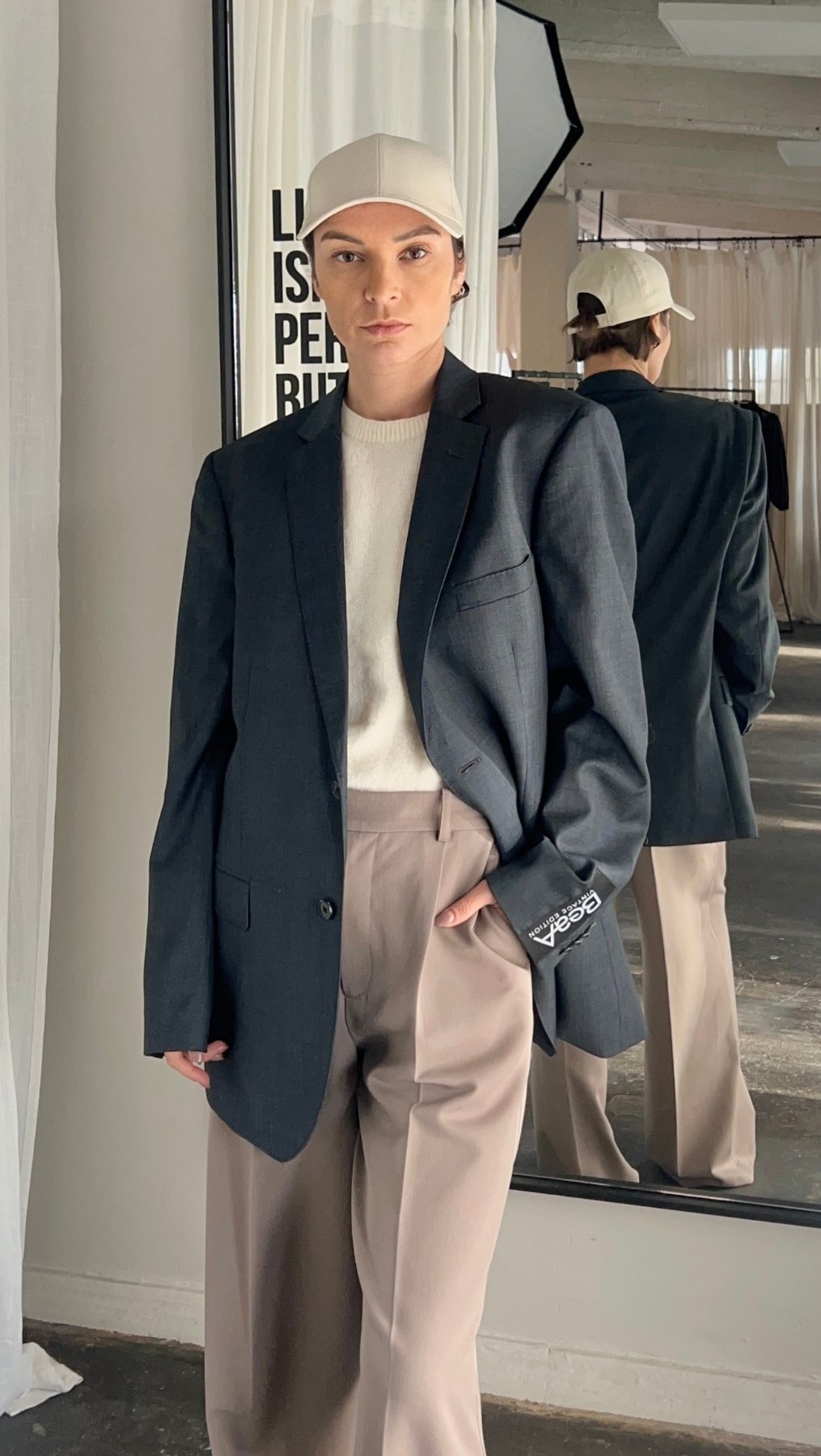 This timeless cut vintage jacket in dark gray color is one of a kind. Upgraded by BeaA’s professional tailors, this item is a stylish enhancement to your wardrobe. Combine it with BeaA trousers, your favorite jeans, leather pants, or a dress.