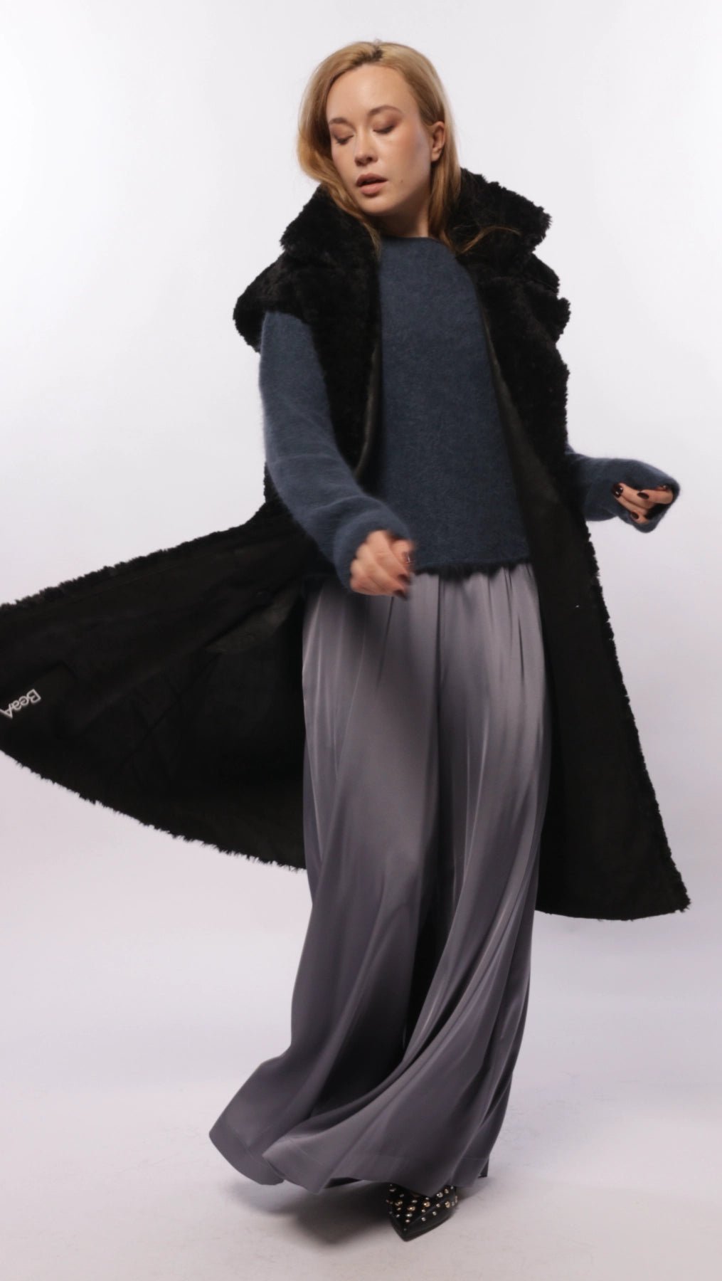 Midi-length vest. Crafted from eco-friendly fur, it offers a luxurious feel guilt-free. Versatile with its two-sided design, it complements various looks. Button fastening adds a touch of elegance. Embrace style and conscience in this eco-fur vest, a timeless addition to your wardrobe.