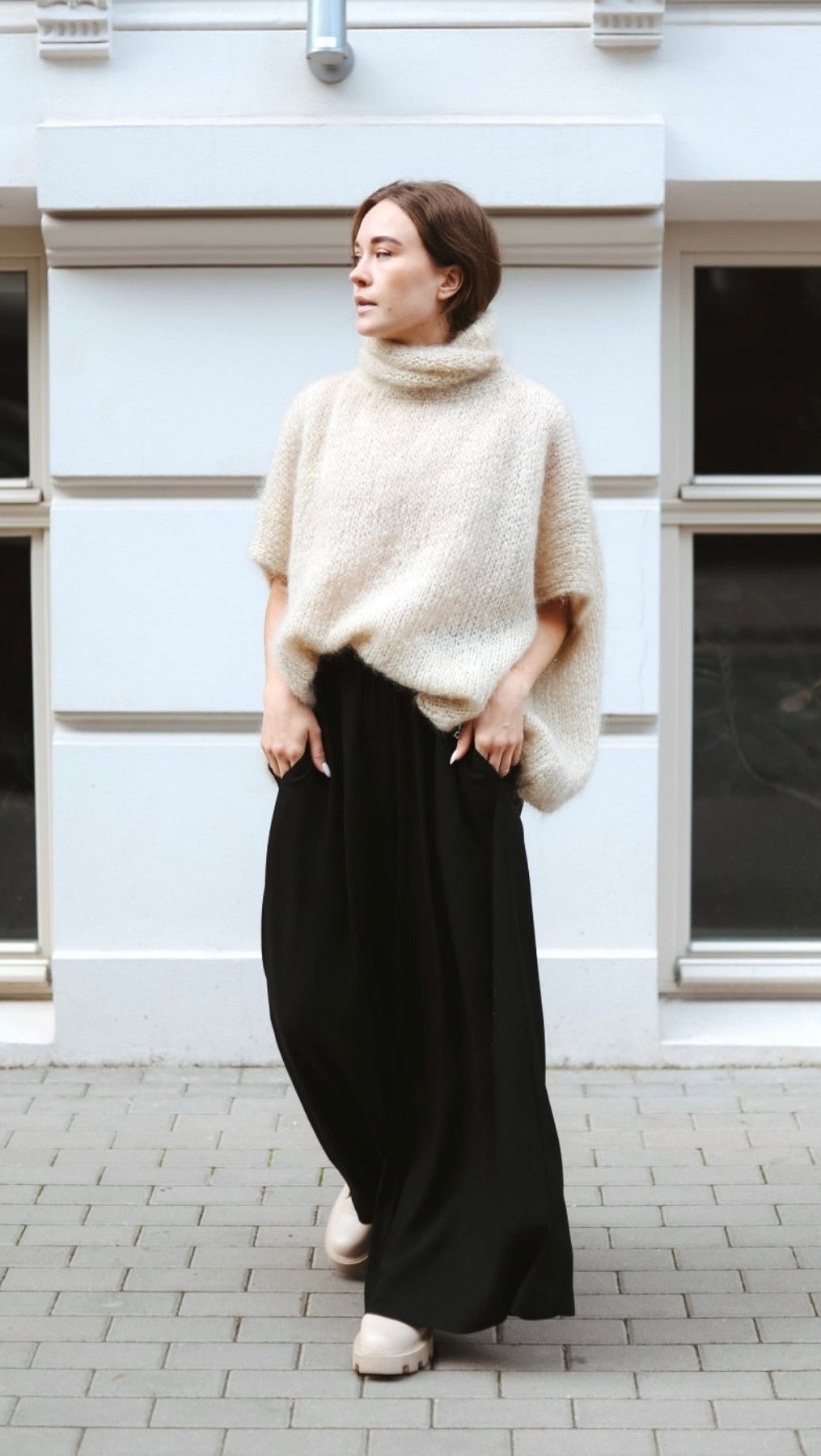 Crafted from a luxurious mohair blend, its generous fit and soft texture promise both warmth and comfort.