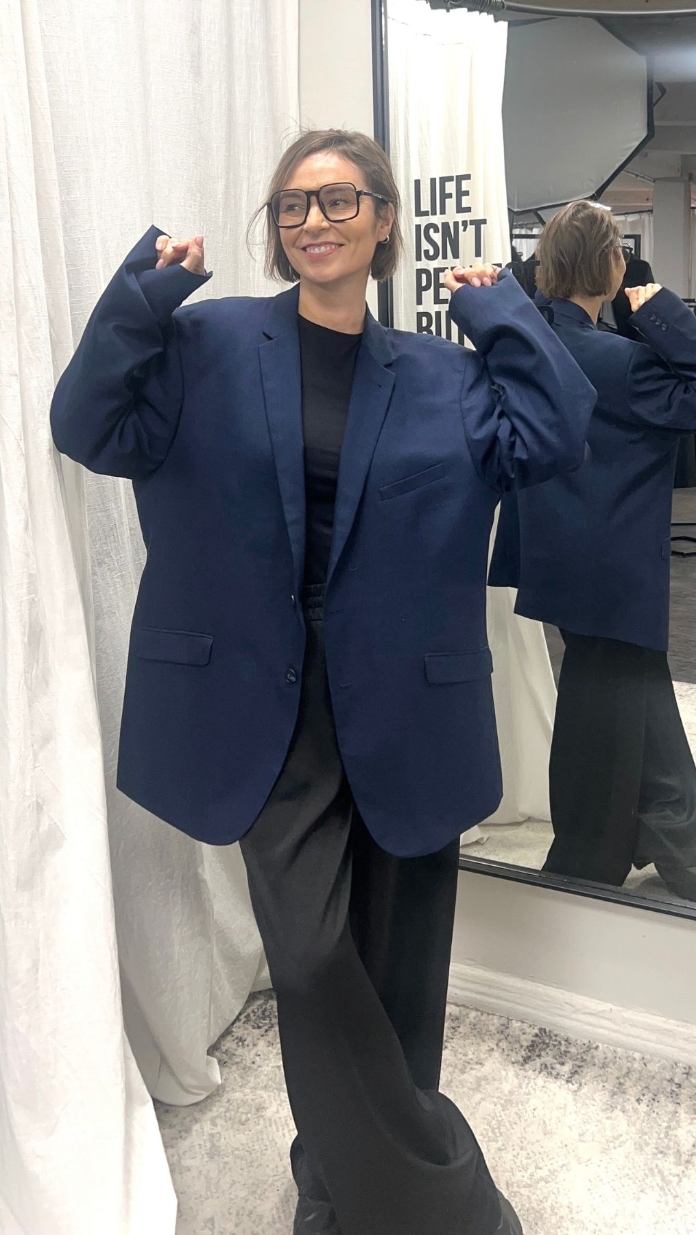 This timeless cut vintage jacket in Dark Blue color is one of a kind. Upgraded by BeaA’s professional tailors, this item is a stylish enhancement to your wardrobe. Combine it with BeaA trousers, your favorite jeans, leather pants, or a dress.
