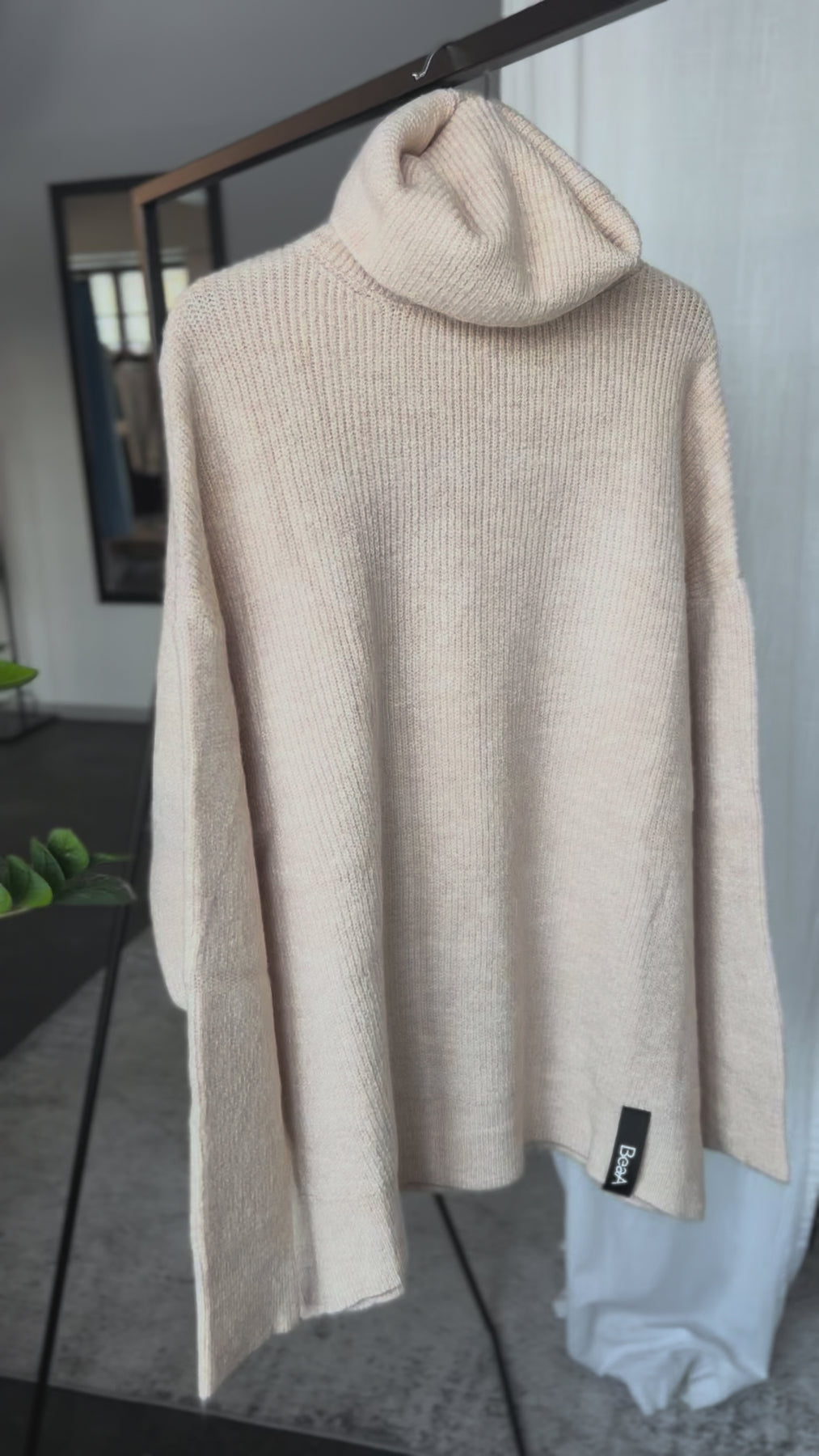 Oversized turtleneck sweater "Beige" BeaA - Be At Home with Yourself