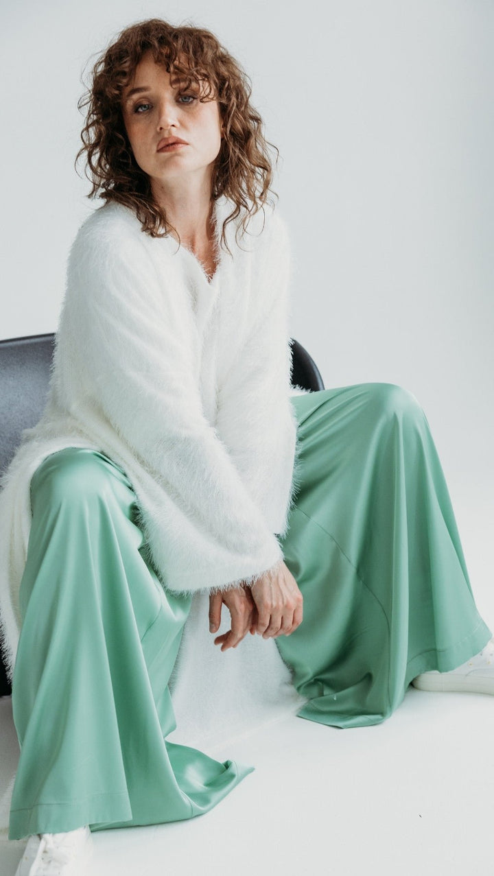 Шелковые брюки Mint палаццо с эластичным поясом и боковыми карманами.